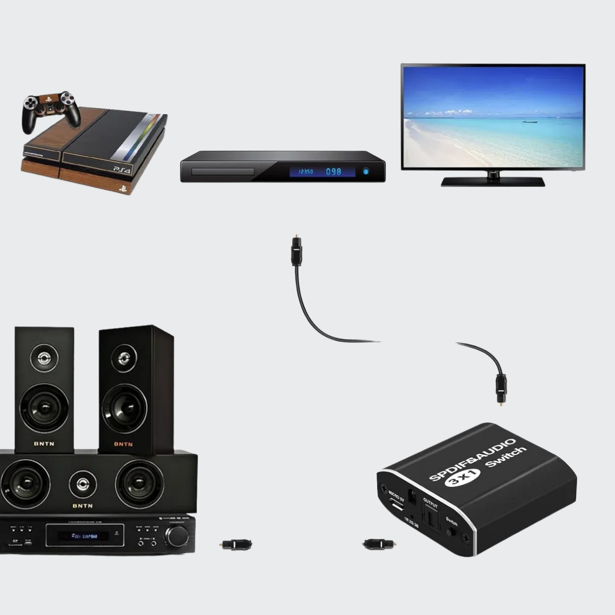 This 3-Port Optical Audio Switch Provides An Easy Way To Switch Between Multiple Audio Sources And Share One Set Of Speakers Or Headphones Between Devices. With Just A Press Of A Button On The Included Remote Control, You Can Seamlessly Switch Playback Between Your Ps5, Xbox, Blu-Ray Player And Other Optical Audio Output Devices. Supporting High-Quality Audio Formats Like Dolby Digital And Dts, You’Ll Enjoy Lossless Surround Sound From Movies And Games On All Your Connected Entertainment Systems. The Included Rca Audio Cables Let You Connect The Switch To Stereo Speakers, So You Can Listen Without Worrying About Lip Sync Issues That Sometimes Occur Over Hdmi. Compact And Lightweight For Flexible Placement, This Optical Audio Switch Makes It Simple To Build Your Home Theater Setup And Get The Most From All Your Audio Gear.