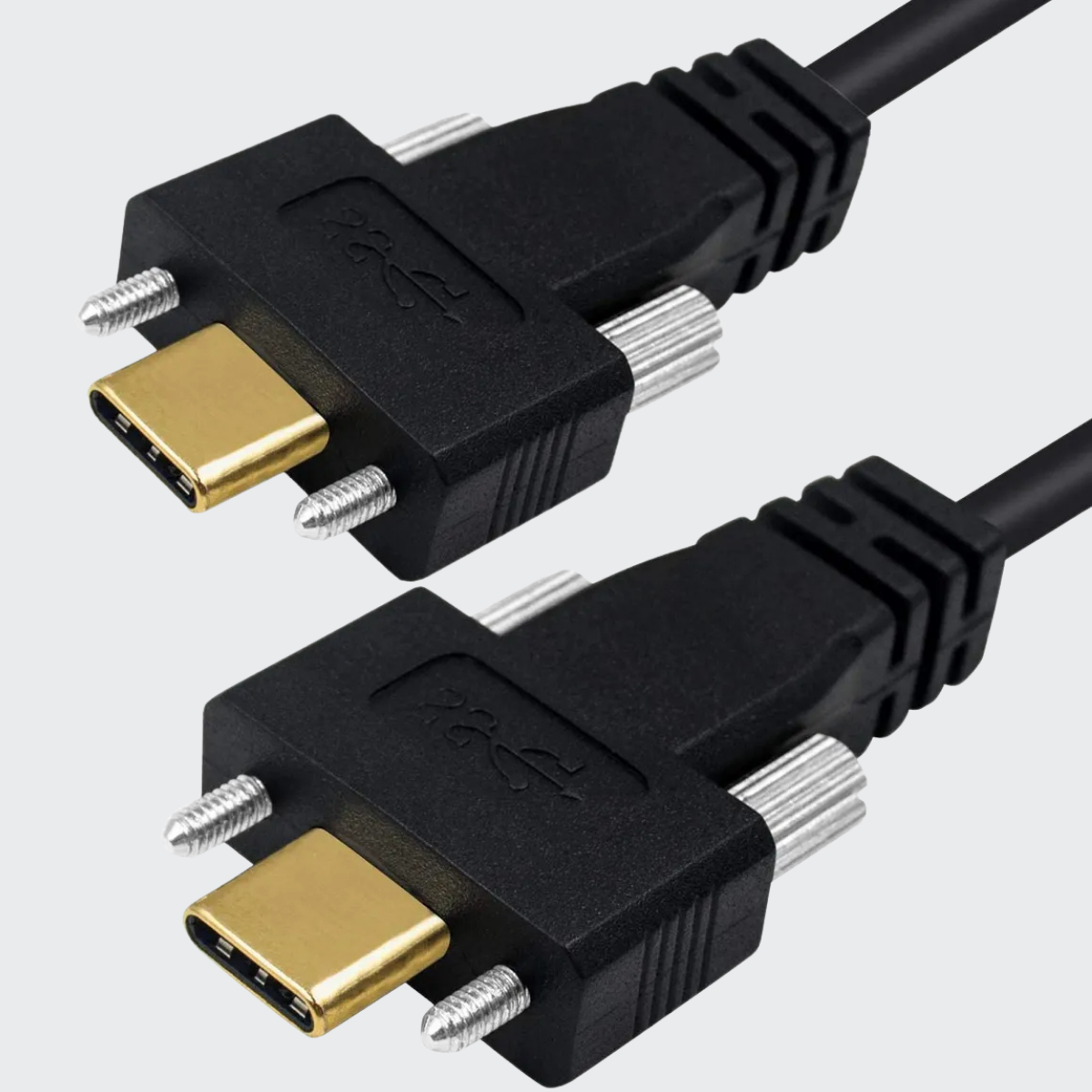 Cable Length:2.0M With M2.0 Panel Mount Locking Screw. Type C Connector Is The New Design For Usb 3.1. Reversible Design For Type C Connector. Response To The Growing Needs For Secure Interconnection, The Usb-C Dual Screw Locking Connector And Single Screw Locking Connector Will Provide More Reliable And Secure Mating Mechanism For Industrial And Other User Application.
