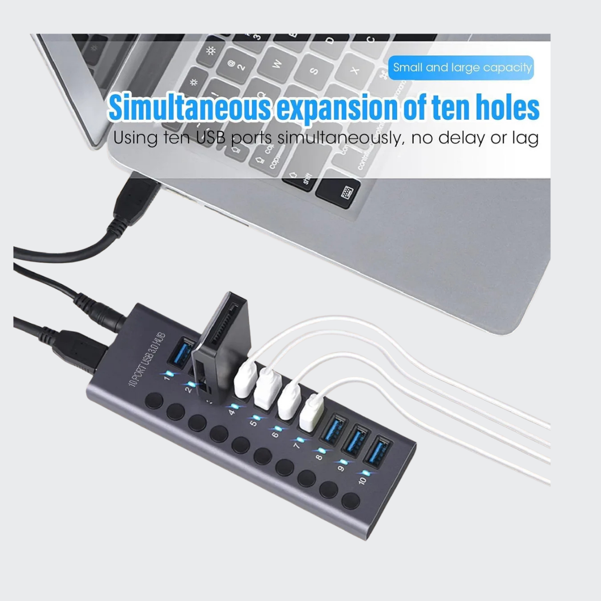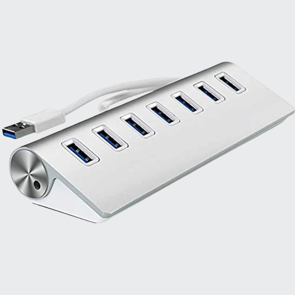 Silver 7-Port Usb 30 Hub, Aluminum Data Hub(Each Port Can Support Up To 2Tb Hdd Simultaneously) Supports All Windows And Mac Book Laptops