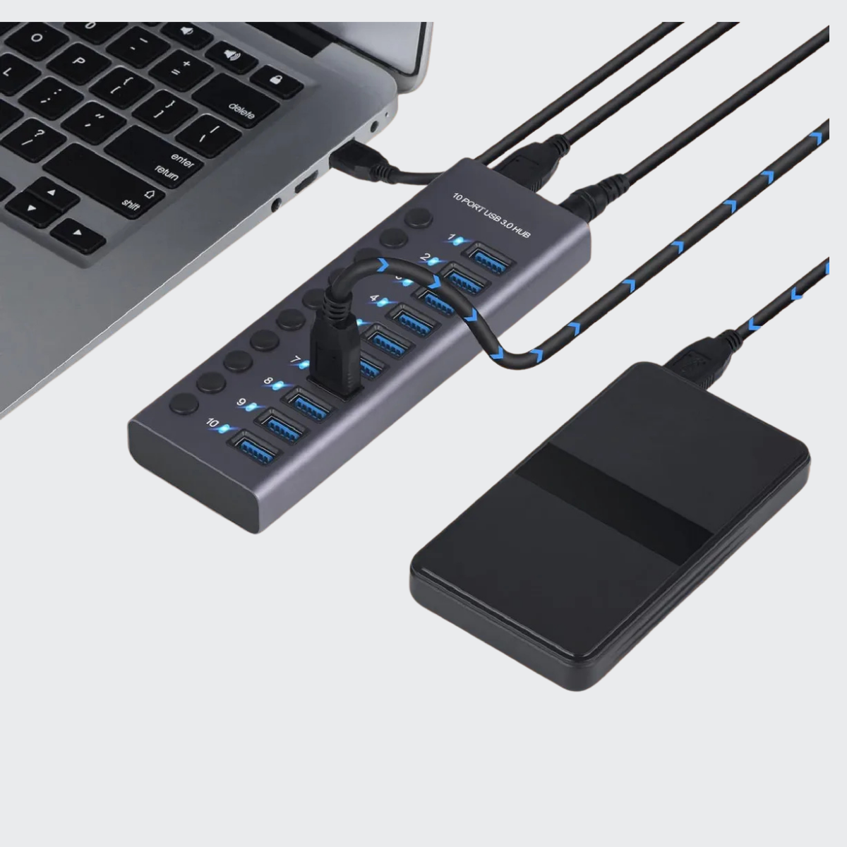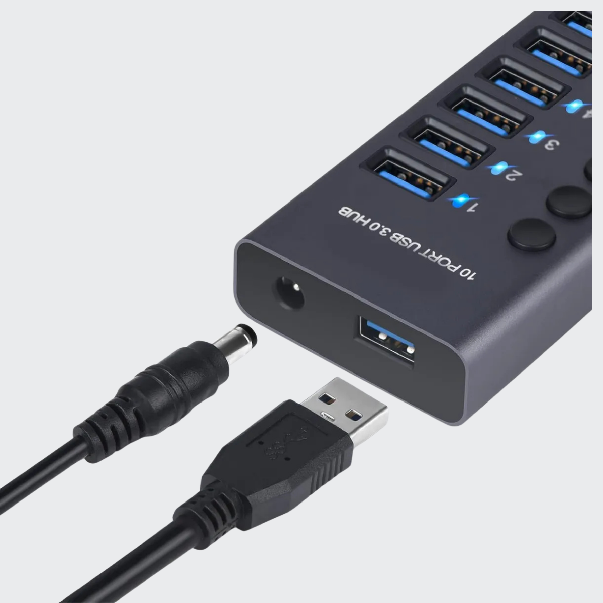 Grey 10 Port Usb 30 Hub, 60 Watts, 10 Switches, Led Indicators, Industrial Use Quality With 1 Year Warranty